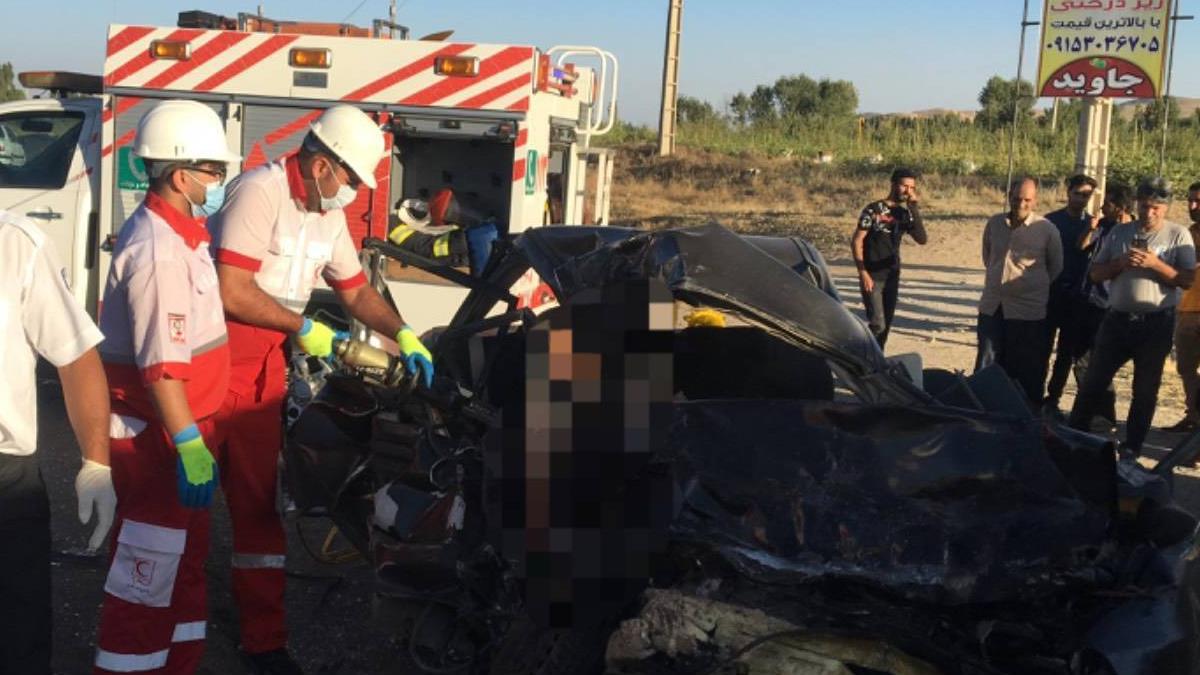 رهاسازی سرنشینان پراید در آزادراه زنجان ـ قزوین با تلاش امدادگران هلالاحمر